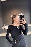 Kadın Omuz Dekolteli Broş Detaylı Body